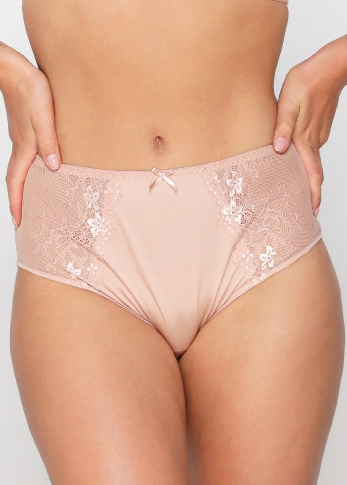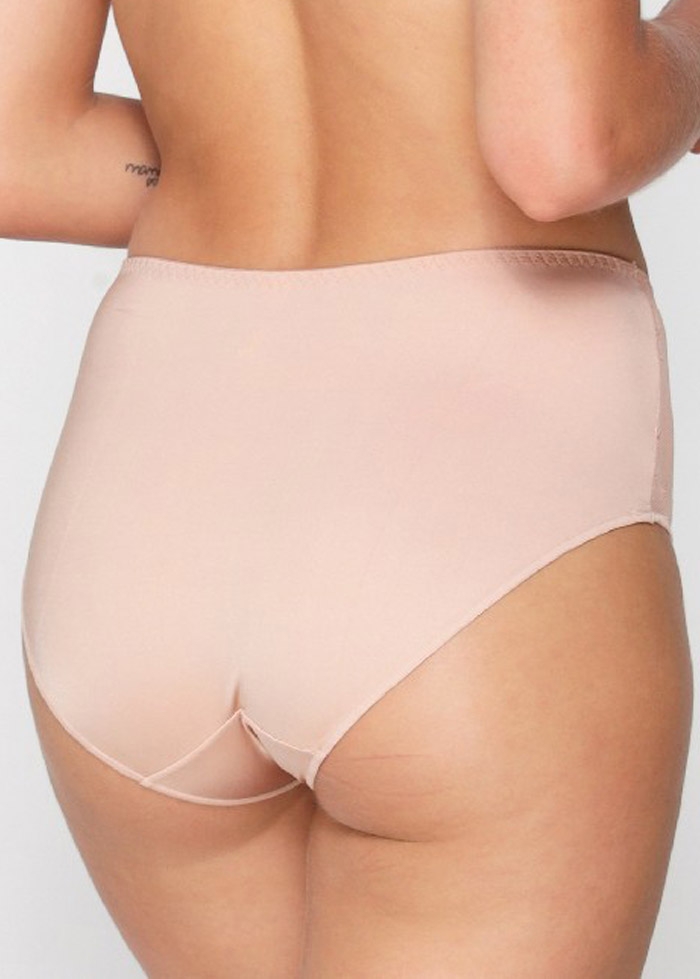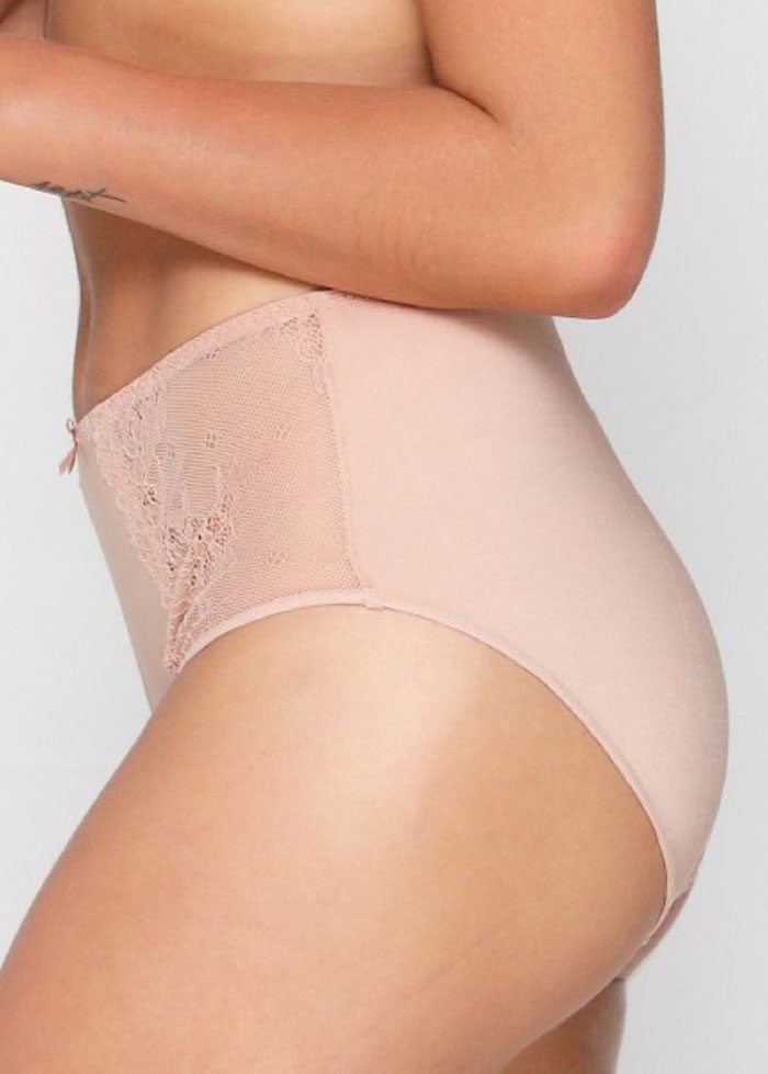 Daily Lace maxitrosa, en vacker underdel med exklusiv spets. Detta är en trosa i blush med heltäckande tyg fram och bak samt en exklusiv spets på sidan av trosan.